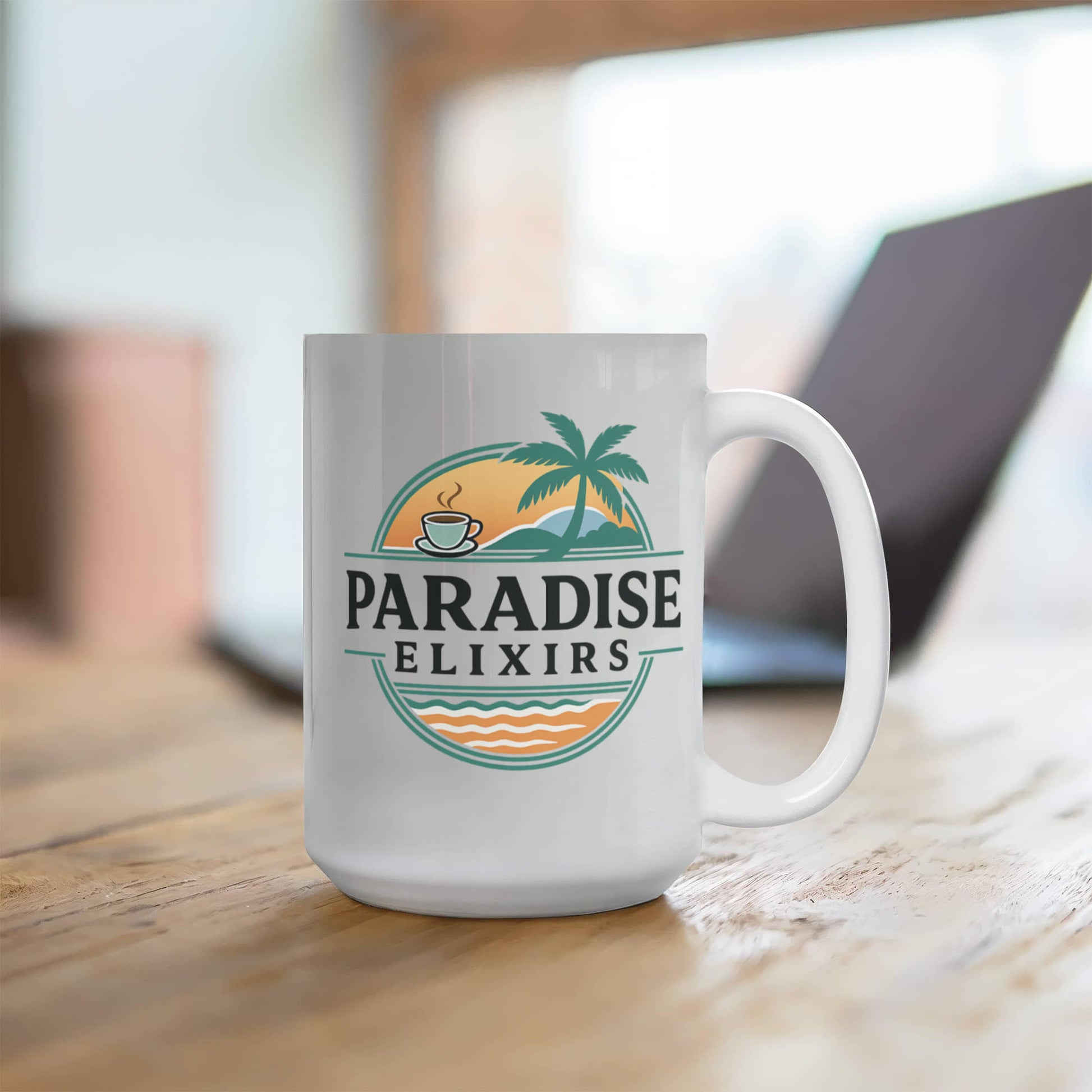 Large 15oz Coffee Mug – Paradise Elixirs Ceramic Cup, Microwave & Dishwasher Safe, Everyday Use Mug